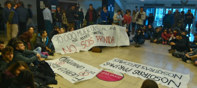 Los miembros de Contrapoder se enfrentan a los asistentes al foro provida celebrado en la universidad Complutense de Madrid impidiéndoles la entrada a la Facultad de Derecho mediante la fuerza y coreando frases en contra de la Iglesia.